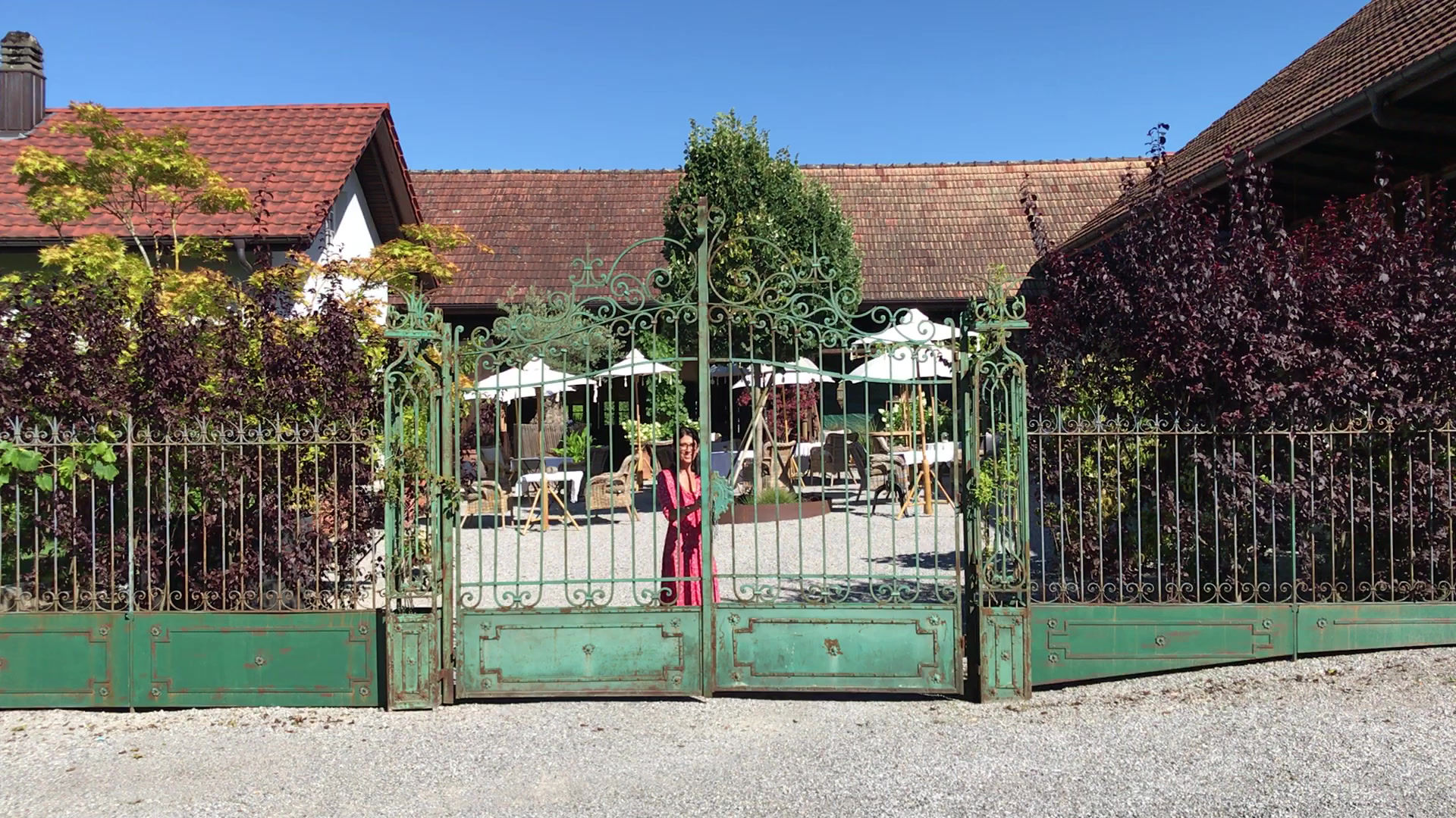 Durch das grosse, genöffnete Eisentor betretet Sie und Ihre Gäste den grosszügigen Hofplatz und das «Gelände» der G23riverside Genuss & Erlebnis Location.